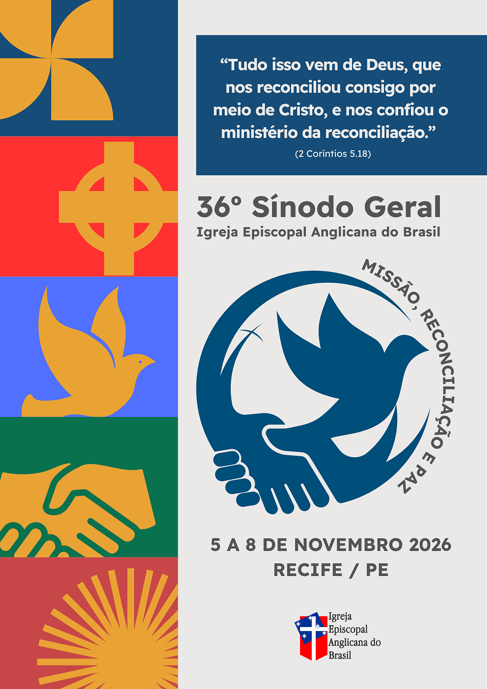 O 36º Sínodo Geral terá como tema “Missão, Reconciliação e Paz”, inspirado no lema bíblico: “Tudo isso vem de Deus, que nos reconciliou consigo por meio de Cristo, e nos confiou o ministério da reconciliação.” (2 Coríntios 5.18). A logomarca vencedora dialoga com esses elementos, refletindo a identidade da IEAB e seu compromisso com a missão cristã em diferentes contextos do país.